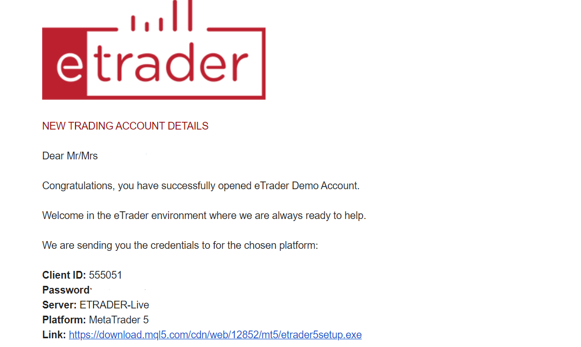 eTrader Demo mail