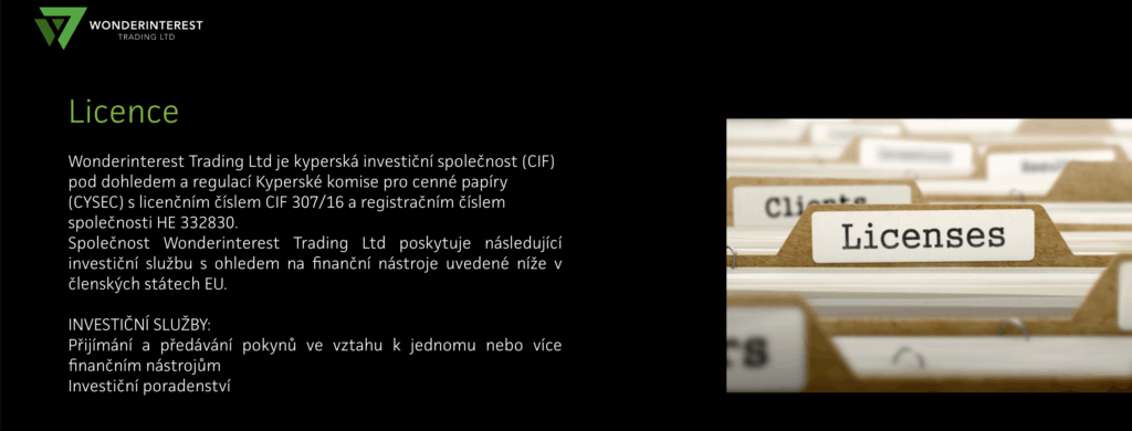 - Regulace brokera Wonderinterest Trading Ltd.