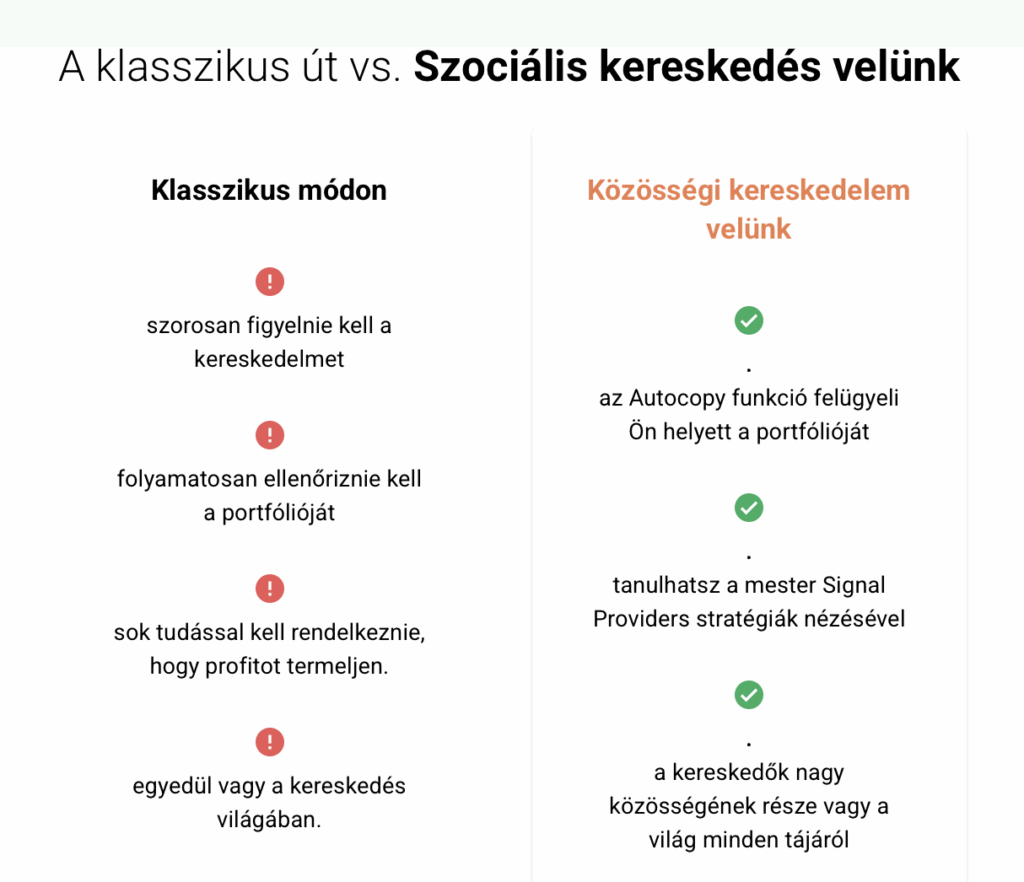 A közösségi kereskedés az egyik legegyszerűbb módja annak, hogy élvezetesebbé tegyük a kereskedést. Nem csak számokról és grafikonokról szól, a kereskedők közössége az egész világon, minden országban megtalálható, és minden korosztályt magában foglal. És te is részese lehetsz ennek.
