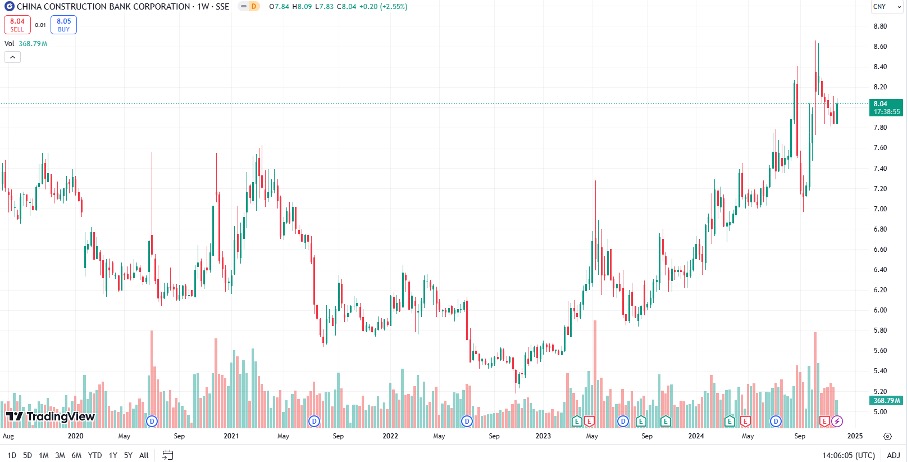 A China Construction Bank részvényeinek teljesítménye az elmúlt 5 évben. Forrás: tradingview.com