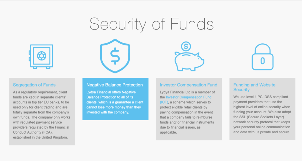 Lydya Financial is a member of the Investor Compensation Fund and ensures that client’s funds are kept segregated from the company’s operational fund in top banks.